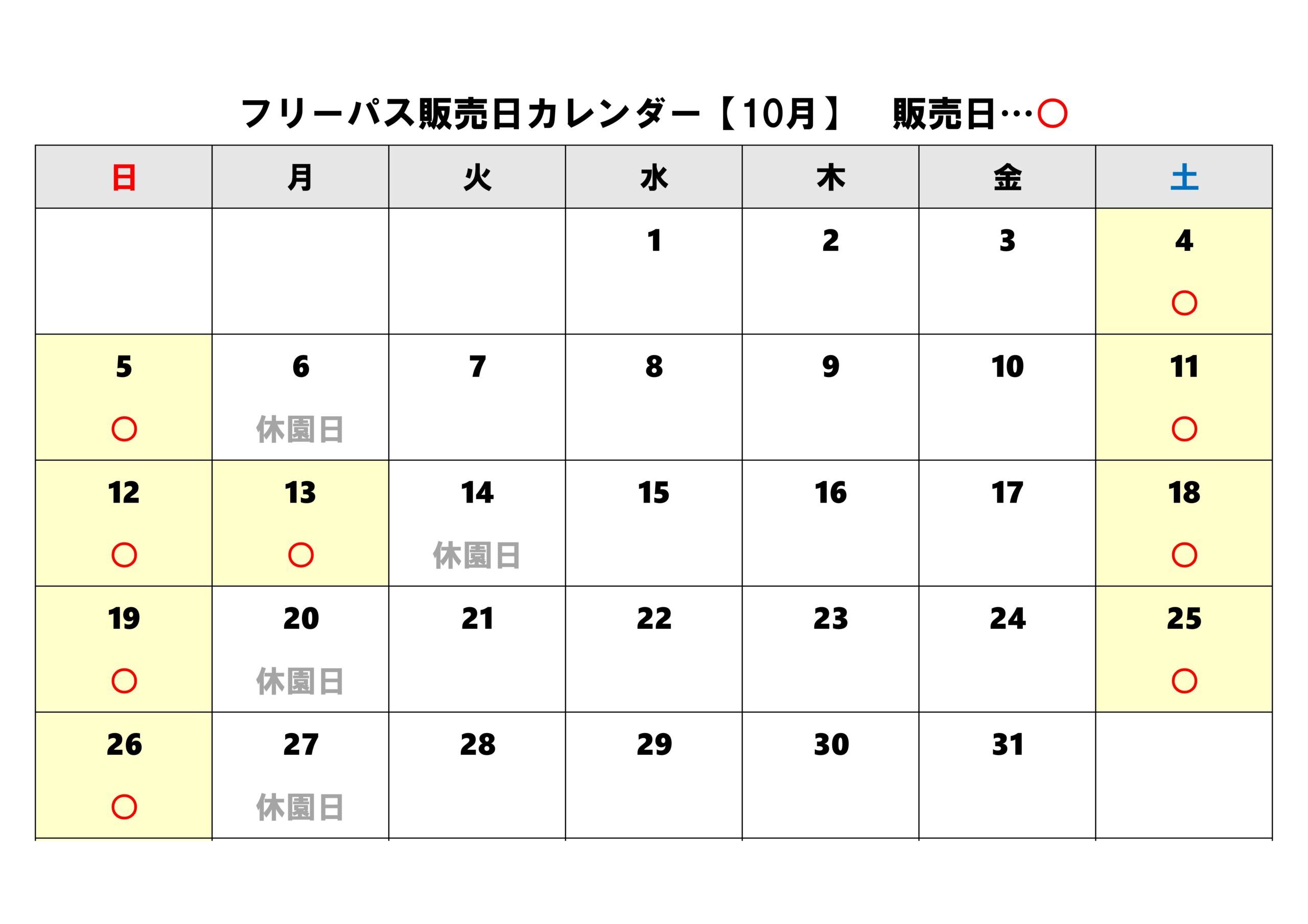 ※混雑状況・悪天候等によりアトラクションを利用できなくてもフリーパス券の払い戻しはできません。ご了承のうえ、ご購入をお願いいたします。