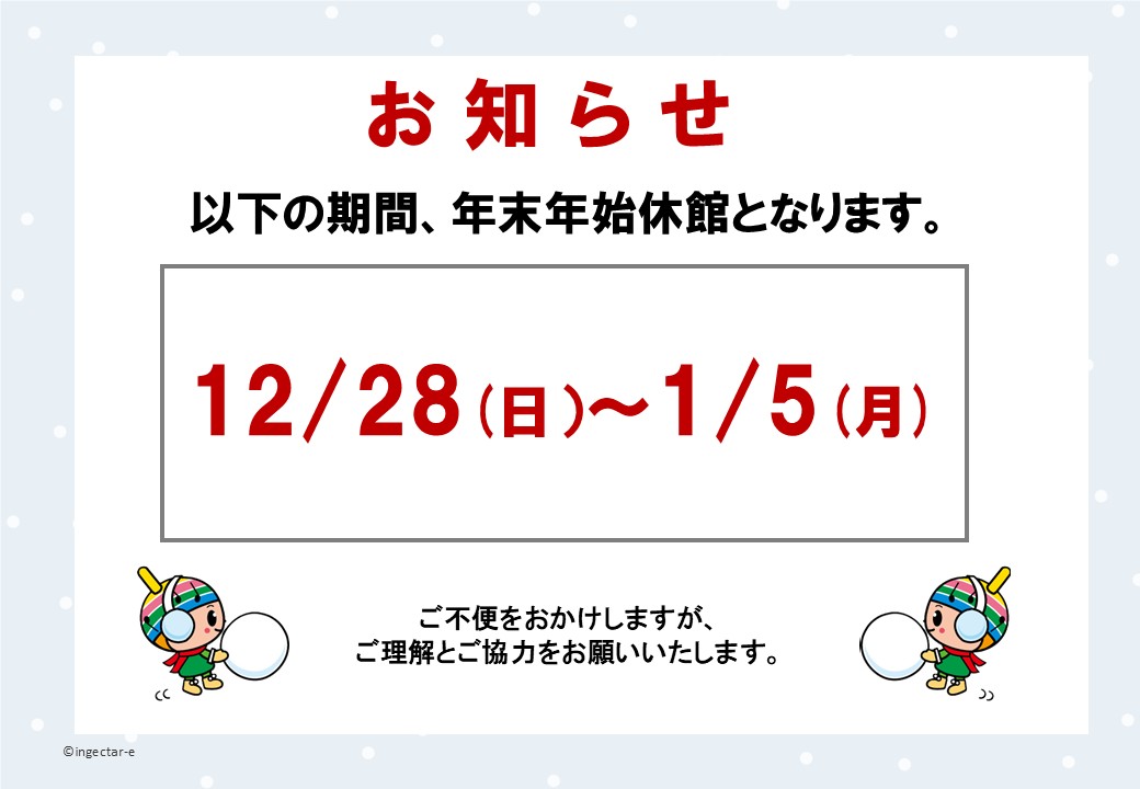 年末年始休館のお知らせ