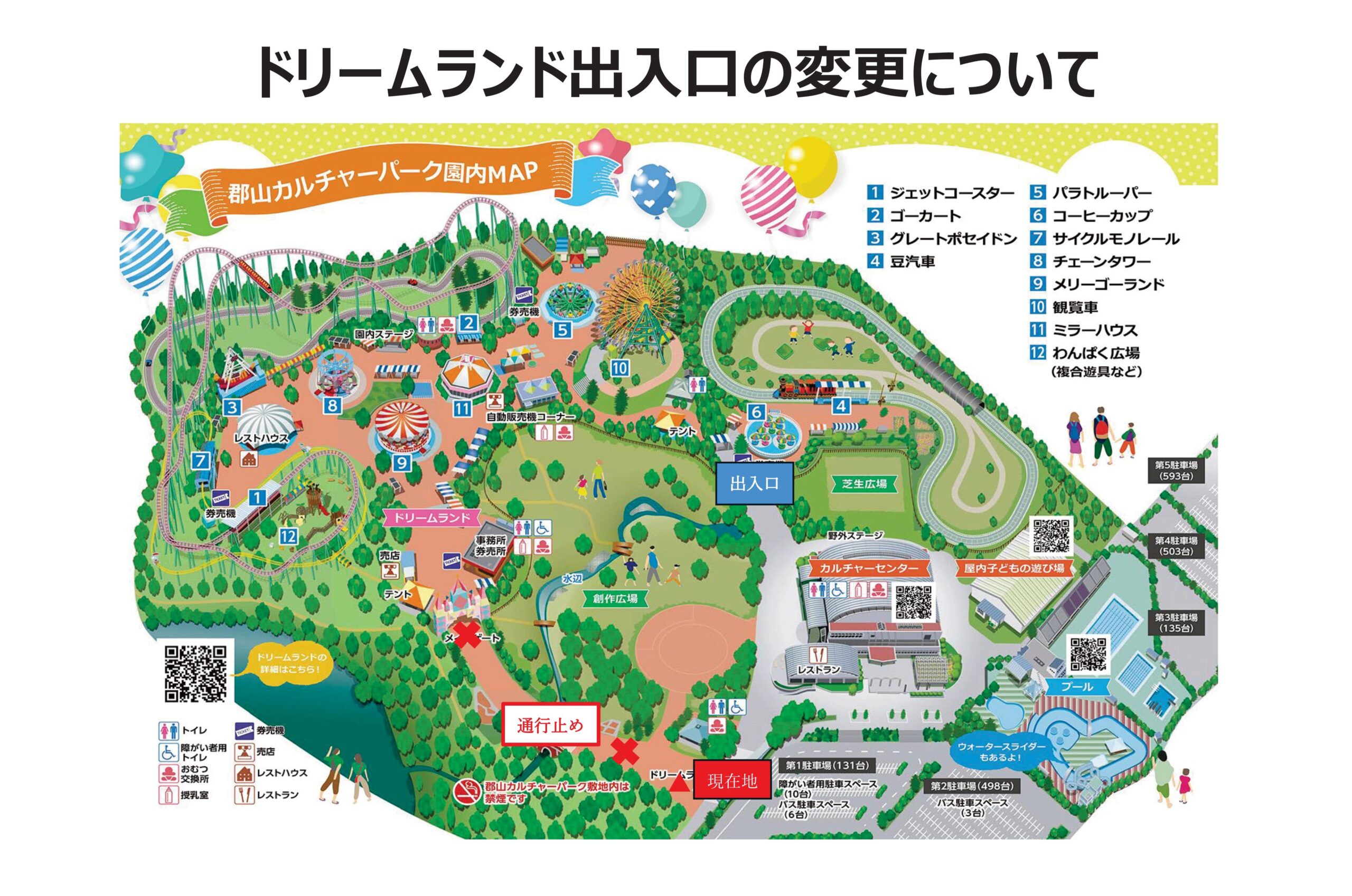 工事に伴い、下記のとおり出入口を変更させていただきます。 ドリームランドをご利用される皆様にはご不便をおかけいたしますが、ご理解とご協力の程よろしくお願いいたします。 なお、ドリームランドは土日祝日のみ営業しております。(営業時間:10:30~15:30) ※塗装工事実施期間:令和8年3月3日(火)まで